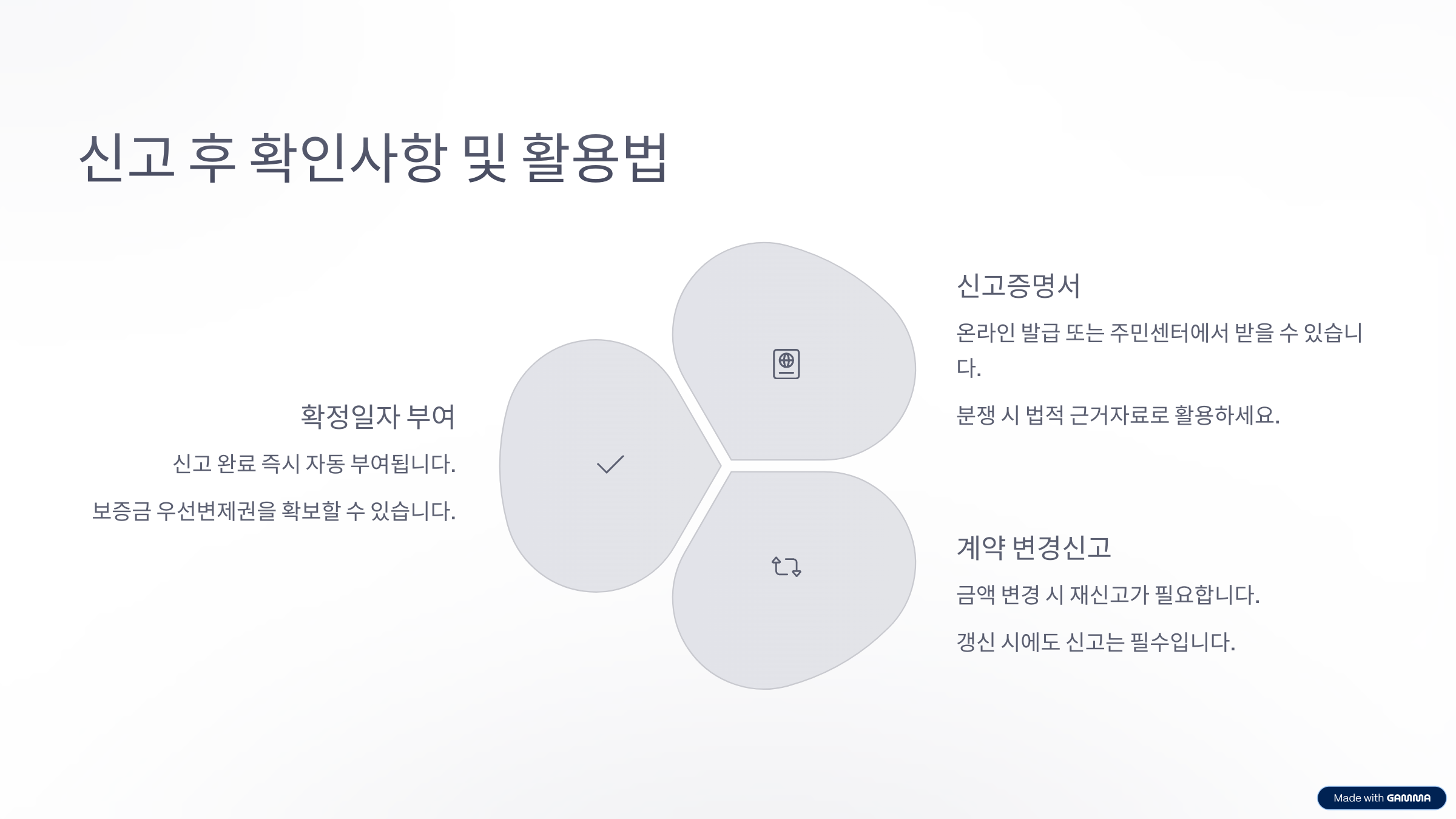 전월세 신고제를 통해 좋은 점도 많습니다. 대표적인 게 확정일자 자동 부여예요. 예전엔 별도로 등기소나 동사무소를 방문해 확정일자를 받아야 했지만, 이제는 신고만 하면 자동으로 부여돼요. 즉, 번거로운 절차 하나가 줄어들고, 보증금 보호도 훨씬 쉬워진 셈이죠.