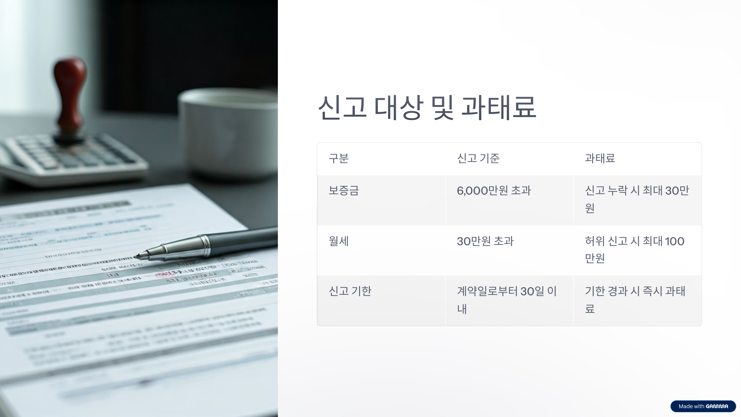 - 신고 기한: 계약 체결일로부터 30일 이내