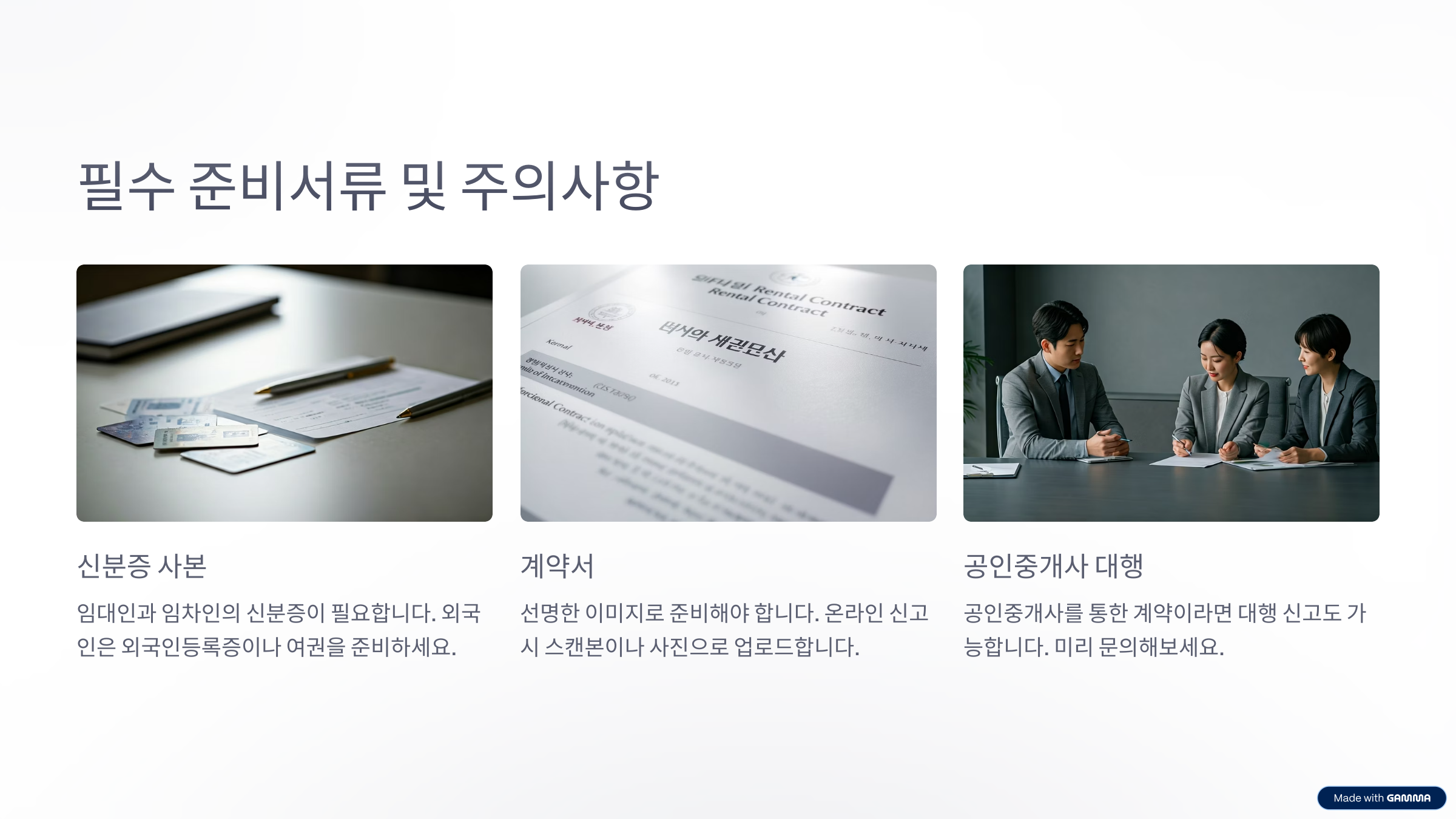 - 온라인 신고 사이트(rtms.molit.go.kr) 또는 주민센터 준비